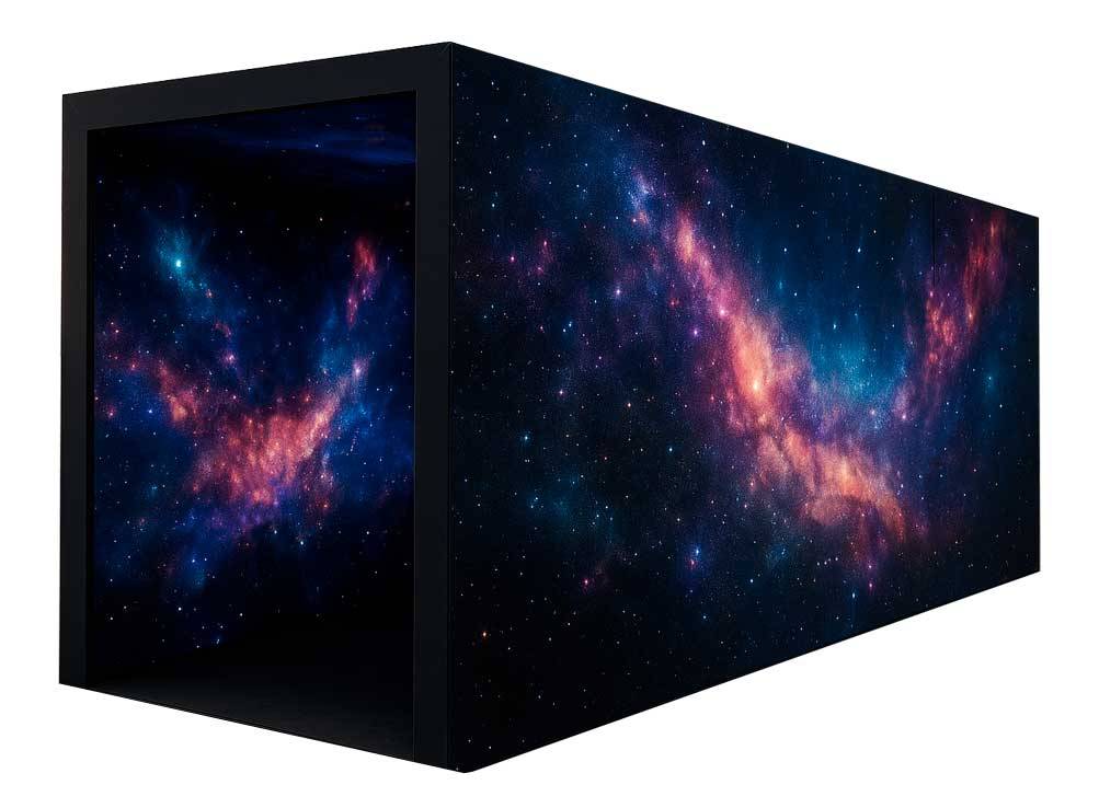 Transformez votre événement avec notre tunnel “Galaxie” en BeMatrix, une structure immersive de 6 m de long sur 2 m de large, habillée en toile noire imprimée effet galaxie. Idéal pour les salons, stands d’exposition, pop-up stores ou espaces événementiels thématiques.