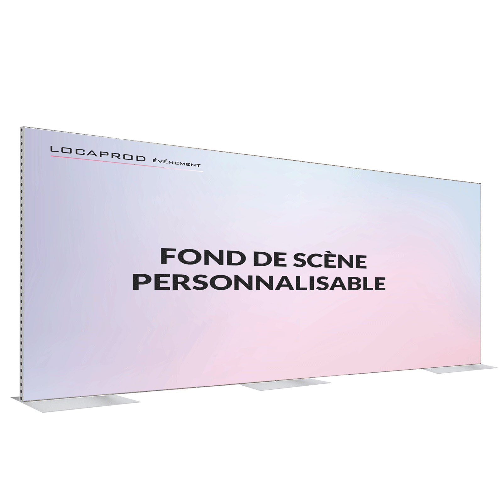 fond de scène personnalisable pour un événement en région parisienne, notre équipe de Locaprod Evénement se tient à votre disposition au 01 39 88 07 59.